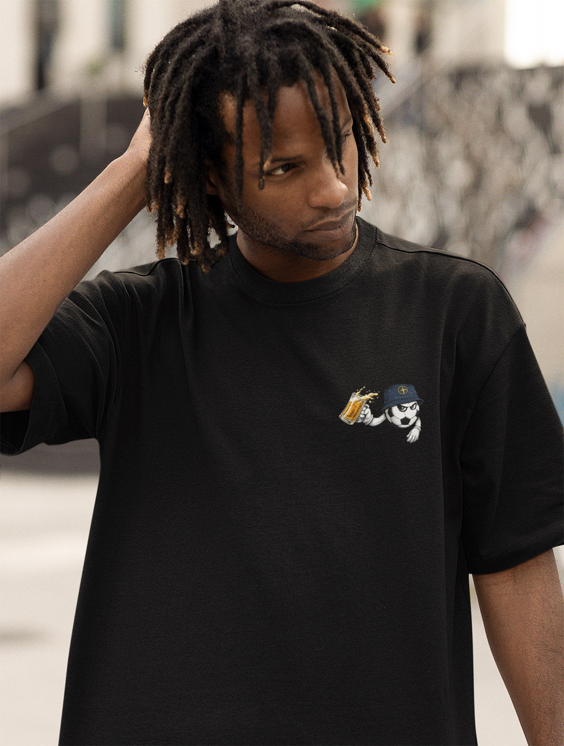 Oversize Tee: Stor passform, gå ner en storlek.